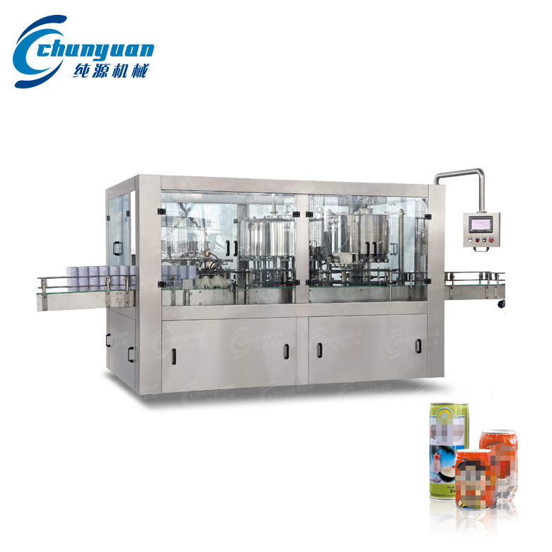 纯源机械厂家制造供应的易拉罐椰子汁饮料机械适用于灌装椰子汁、果汁、茶饮料、功能性饮料等不含气饮料的易拉罐灌装。易拉罐饮料机械的生产能力为4000-36000灌每小时。