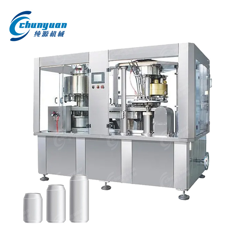 易拉罐啤酒灌装机是用于将啤酒灌装到易拉罐中的机械设备,易拉罐啤酒灌装设备的工作原理相对简单但要求精度高、速度快。